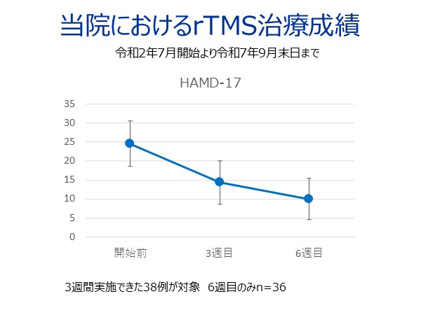 当院では、多くの患者さんにrTMS療法を保険診療で受けていただけるように、その体制を整えるよう多職種チームで努力しております。しかし、現時点では受け入れ可能人数が限られており、お待たせすることがございますが何卒ご容赦ください。